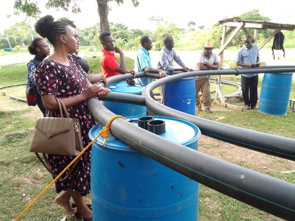 Similarly, on 19th March 2024, the team conducted assessments across four sites within Mukono and Buikwe districts to establish their viability for location of a mini living lab and fish processing unit. These included two sites in Namumira Anthony Ward, Mukono Municipality, as well as Kikuba, and Kamos Fish Farm in Buikwe district. At the sites, the team assessed the topography in relation to the planned activities. At Kamos Fish Farm, the team explored the potential for setting up small, customized experimental cages and ponds to facilitate the project’s experimental activities. The cages and ponds would be used to cultivate tilapia and catfish, with the aim of establishing controls for growth rates in relation to fish feed. Various aspects, such as logistics, feasibility and cost estimates for constructing the cages, were discussed with the owner of the farm.
