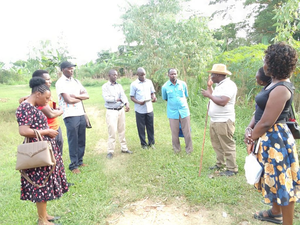 The team assesses another potential site for construction of ponds in Namumira Anthony Ward, Mukono, Municipality